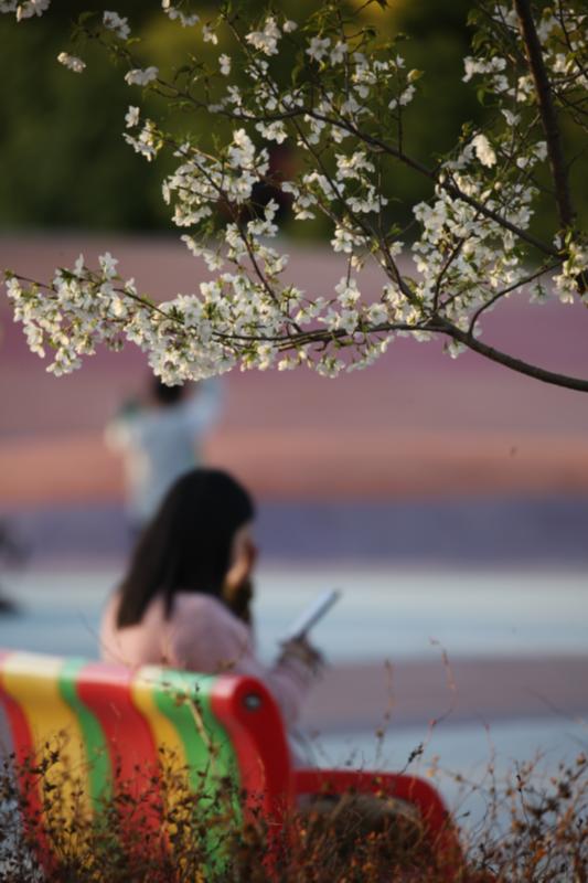 春風(fēng)拂面,百花盛開,明媚的春光里,居民們紛紛走上街頭,來到家門口的公園里,徜徉在花海中,或拍照留念,或嬉戲玩耍。圖為3月14日,居民們在太昊路周口運動公園休閑娛樂。記者劉俊濤攝