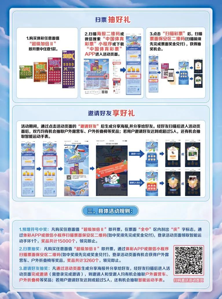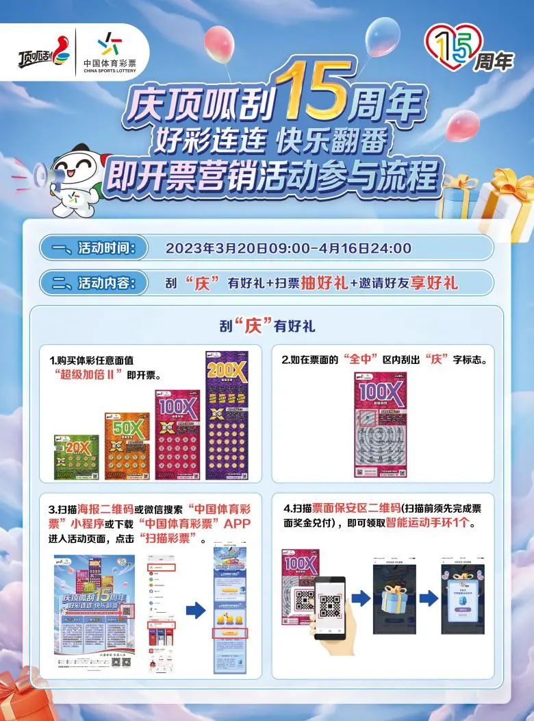 3.全國促銷活動(dòng)細(xì)則,詳見“中國體育彩票”APP、微信小程序活動(dòng)頁面,或登錄中國體彩網(wǎng)查詢相關(guān)信息。