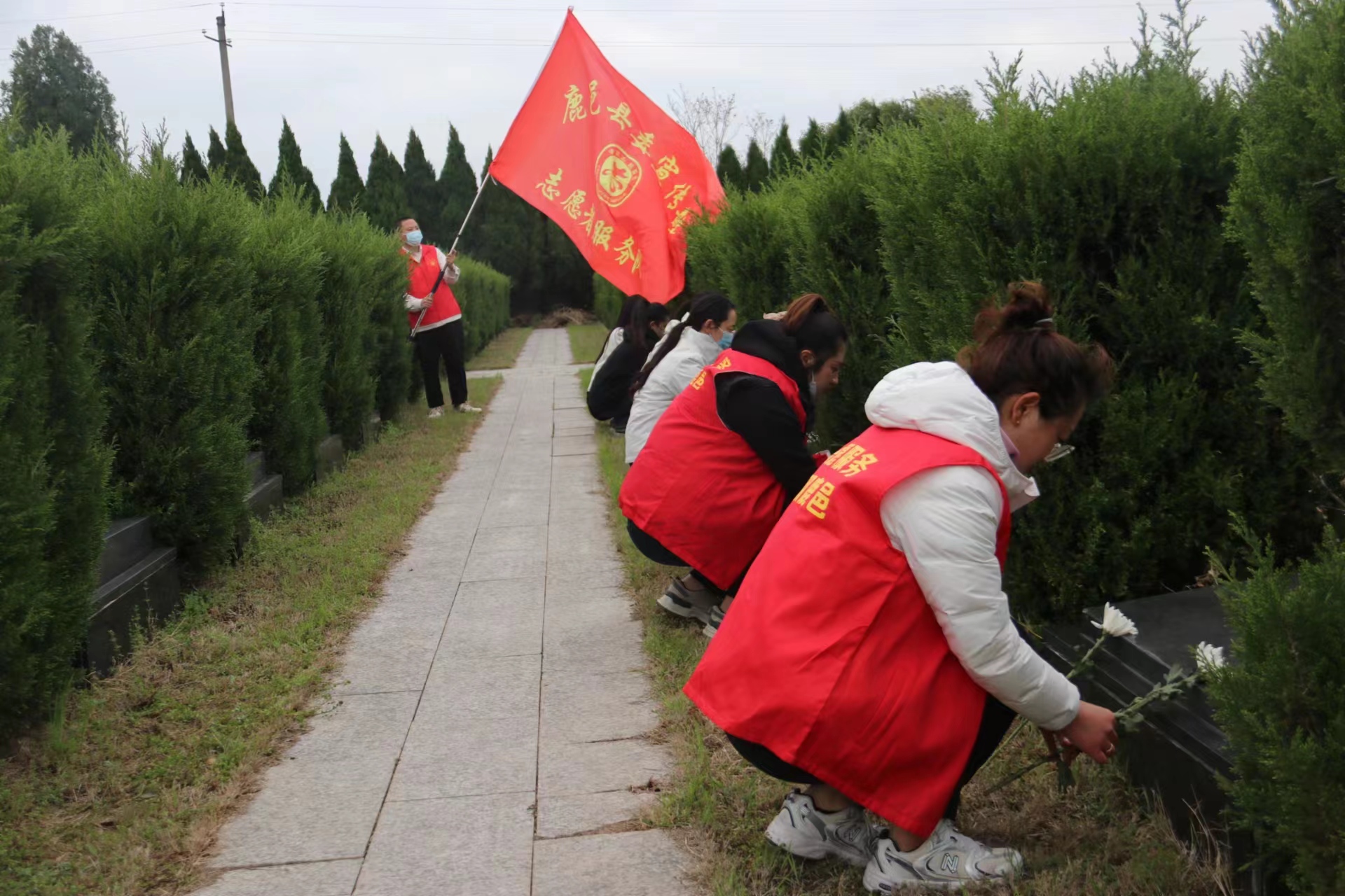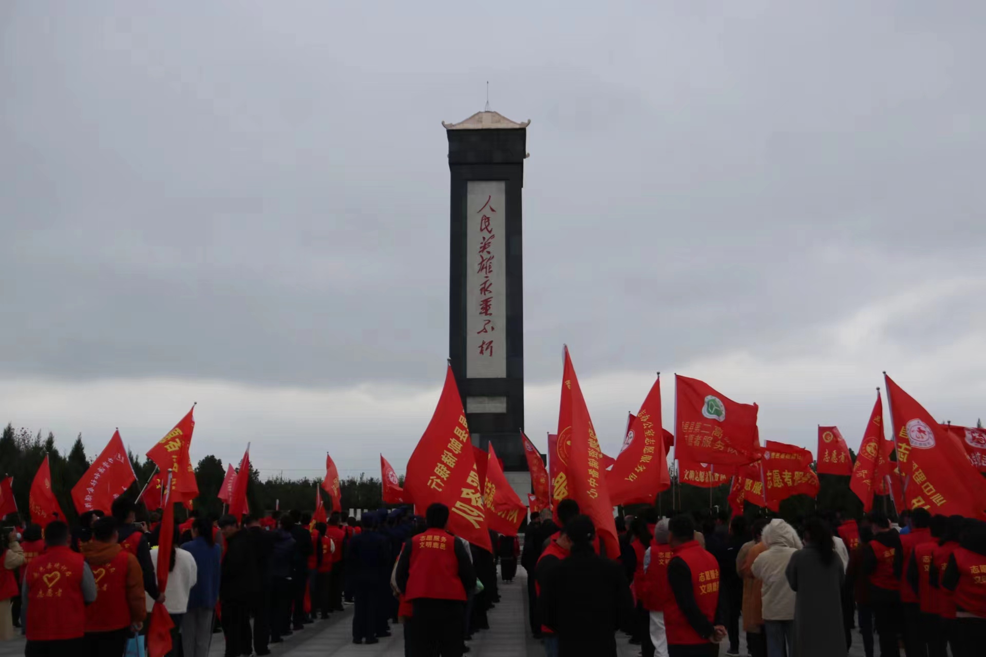 在莊嚴(yán)肅穆的革命烈士陵園,全體人員懷著崇敬之情,列隊(duì)肅立,在革命烈士紀(jì)念碑前奏唱《中華人民共和國國歌》。并向?yàn)橹袊嗣窠夥攀聵I(yè)和共和國建設(shè)事業(yè)英勇獻(xiàn)身的烈士默哀。隨后,少先隊(duì)員代表向烈士獻(xiàn)詞,全體人員瞻仰烈士紀(jì)念碑,深切緬懷革命先烈的不朽功績,寄托對革命先烈的無限追思。
