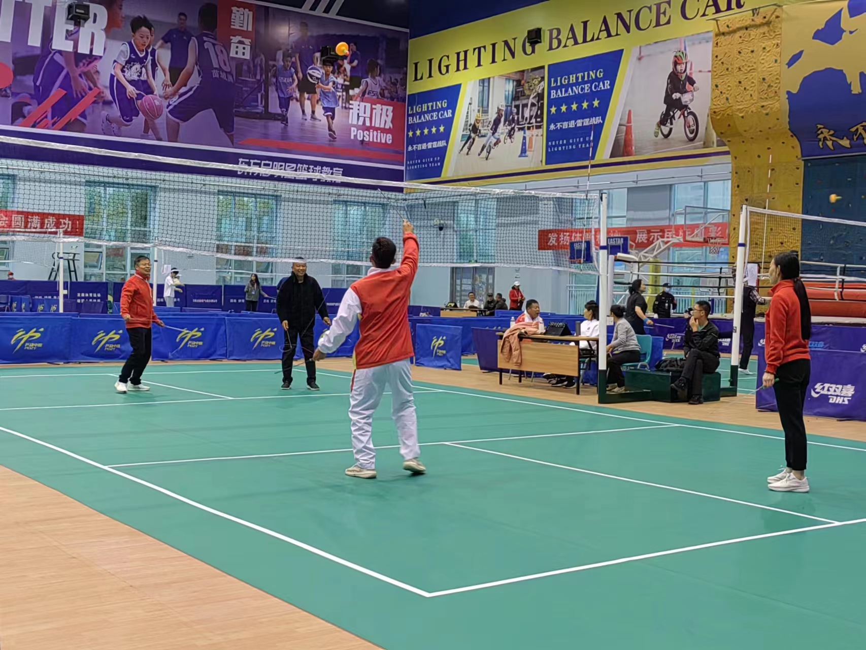 空竹球是近年來空竹界興起的一項新運動,是在單頭空竹拋接的基礎上結合羽毛球、排球、網(wǎng)球等非身體接觸運動項目的比賽規(guī)則,融合抖空竹運動而開拓創(chuàng)新的一項競技運動。該運動需要抖空竹的技巧,同時融入比賽的對抗性元素。