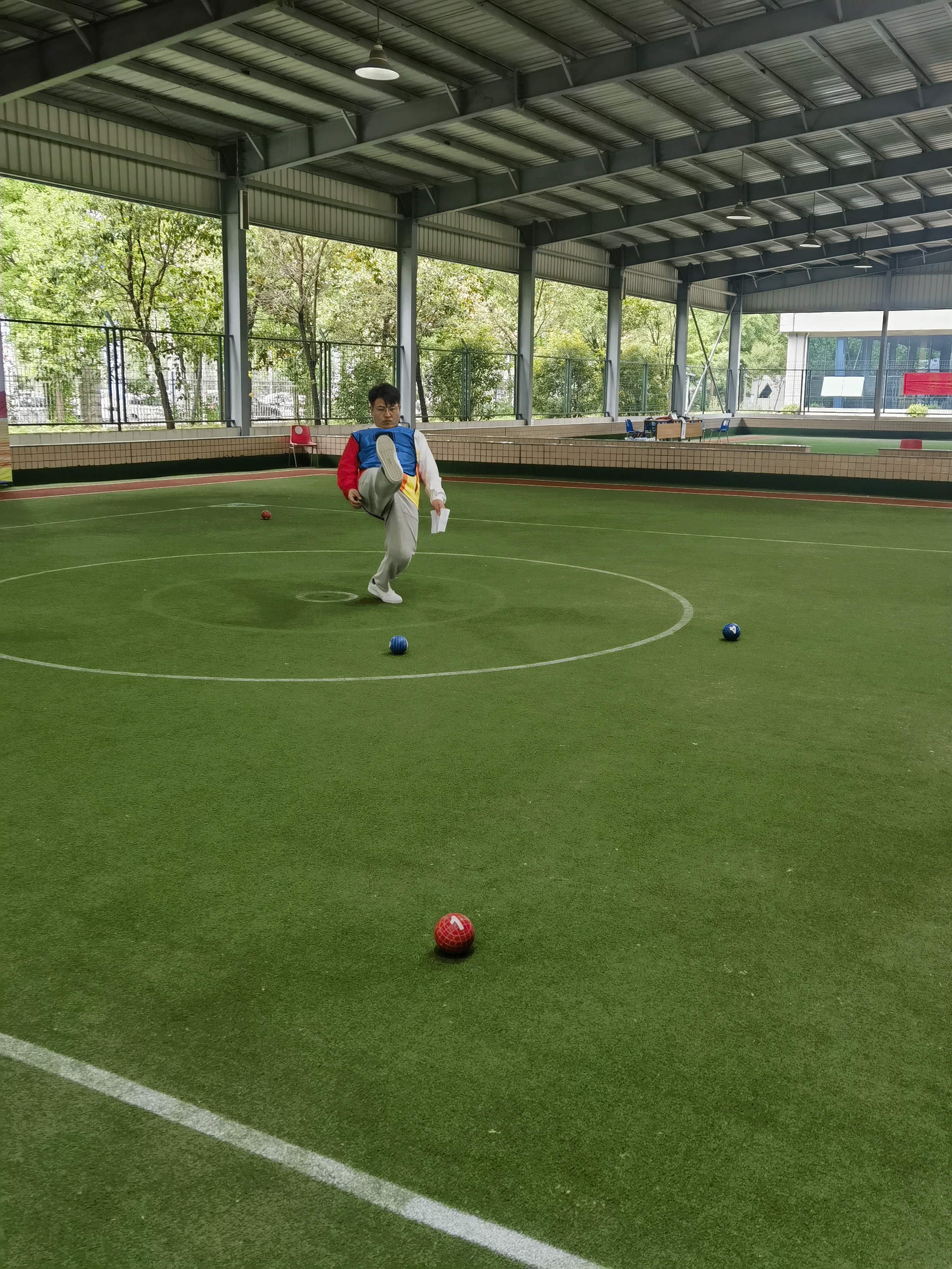 上午11時(shí)40分,在蹴球項(xiàng)目男子單蹴的決賽現(xiàn)場(chǎng),周口代表隊(duì)與南陽(yáng)代表隊(duì)決賽正如火如荼地進(jìn)行。隨著觀眾陣陣喝彩,周口代表隊(duì)運(yùn)動(dòng)員劉風(fēng)光以100:91的成績(jī)一舉奪冠。與此同時(shí),在相鄰的周口代表隊(duì)與河南城建代表隊(duì)女子單蹴的決賽場(chǎng)也進(jìn)入高潮,最終河南城建代表隊(duì)運(yùn)動(dòng)員趙佳勝出,周口代表隊(duì)運(yùn)動(dòng)員吳思桔和南陽(yáng)代表隊(duì)運(yùn)動(dòng)員曼孜來(lái)·木沙江獲二等獎(jiǎng)。