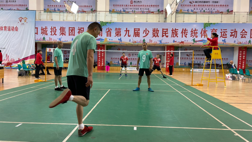 扣殺、挑球、倒鉤、跳踢……在第九屆全省民族運動會毽球比賽的熱身場上,運動員們熟練地踢著毽子,小小毽球在球網(wǎng)上凌空穿梭,上下翻飛。周口毽球代表隊運動員高紅山腳蹬舒適軟底毽球鞋,在隊友們的默契配合下,毽球上下翻轉(zhuǎn),不時甩出一道道完美的拋物線。