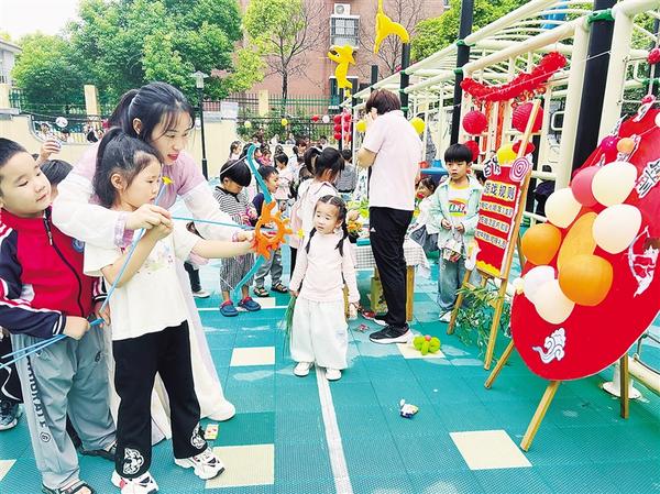 中秋節(jié)前夕,市城鄉(xiāng)一體化示范區(qū)各幼兒園積極組織開(kāi)展形式多樣、內(nèi)容豐富的慶?;顒?dòng),讓學(xué)生沉浸式感受中華優(yōu)秀傳統(tǒng)文化的獨(dú)特魅力。圖一為老師帶領(lǐng)小朋友體驗(yàn)“后羿射日”游戲。