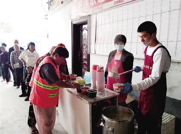 10月10日,重陽節(jié)前夕,清晨第一縷陽光灑向大地,錢廣新已經(jīng)忙碌起來,在他和廚師的精心準備下,一鍋鍋熱氣騰騰、香氣四溢的綠豆面條端了出來。錢廣新一邊熱情地招呼老人排隊,一邊動手盛飯,微笑掛在嘴角,快樂寫在臉上。