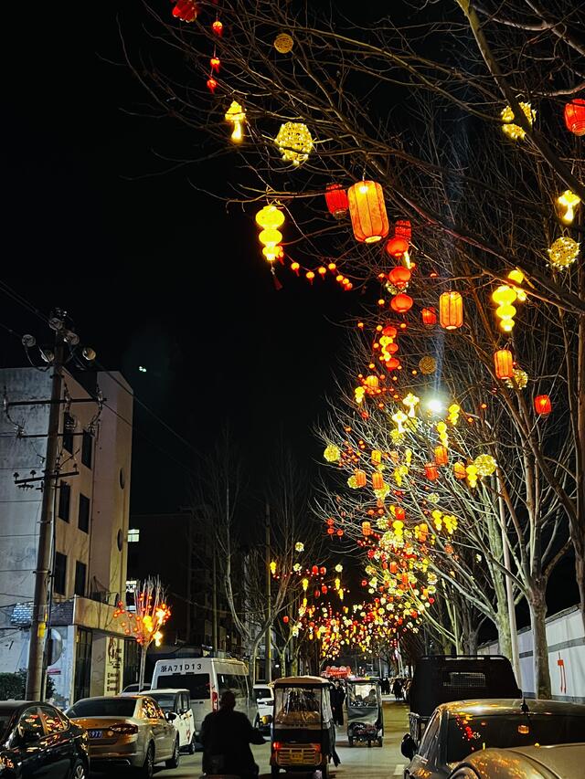 2月18日晚,記者在川匯區(qū)荷花路看到,路旁樹(shù)上掛滿了各式各樣的春節(jié)燈飾。紅色的燈籠沿街道綿延鋪展,金色的燈球在晚風(fēng)中輕輕搖曳,光影將這條老街的輪廓勾勒得靈動(dòng)雅致。