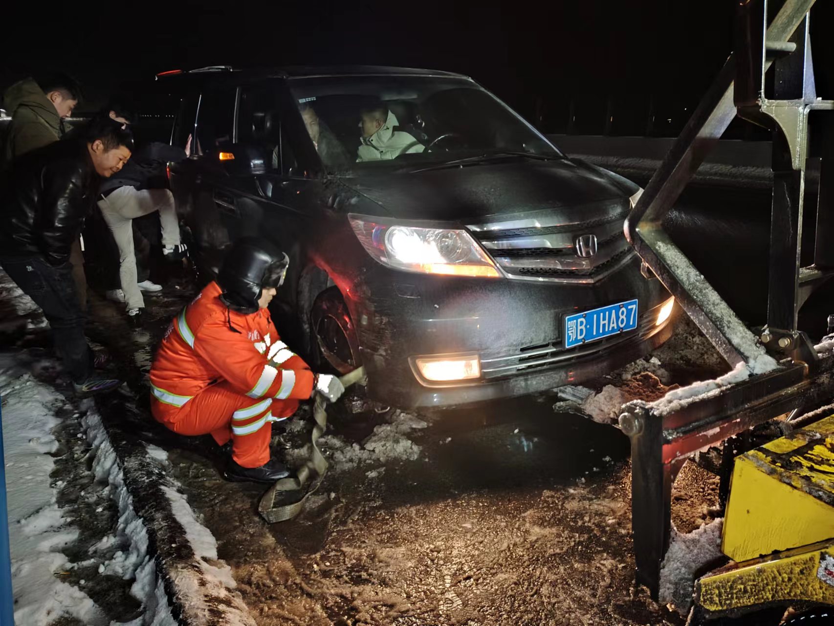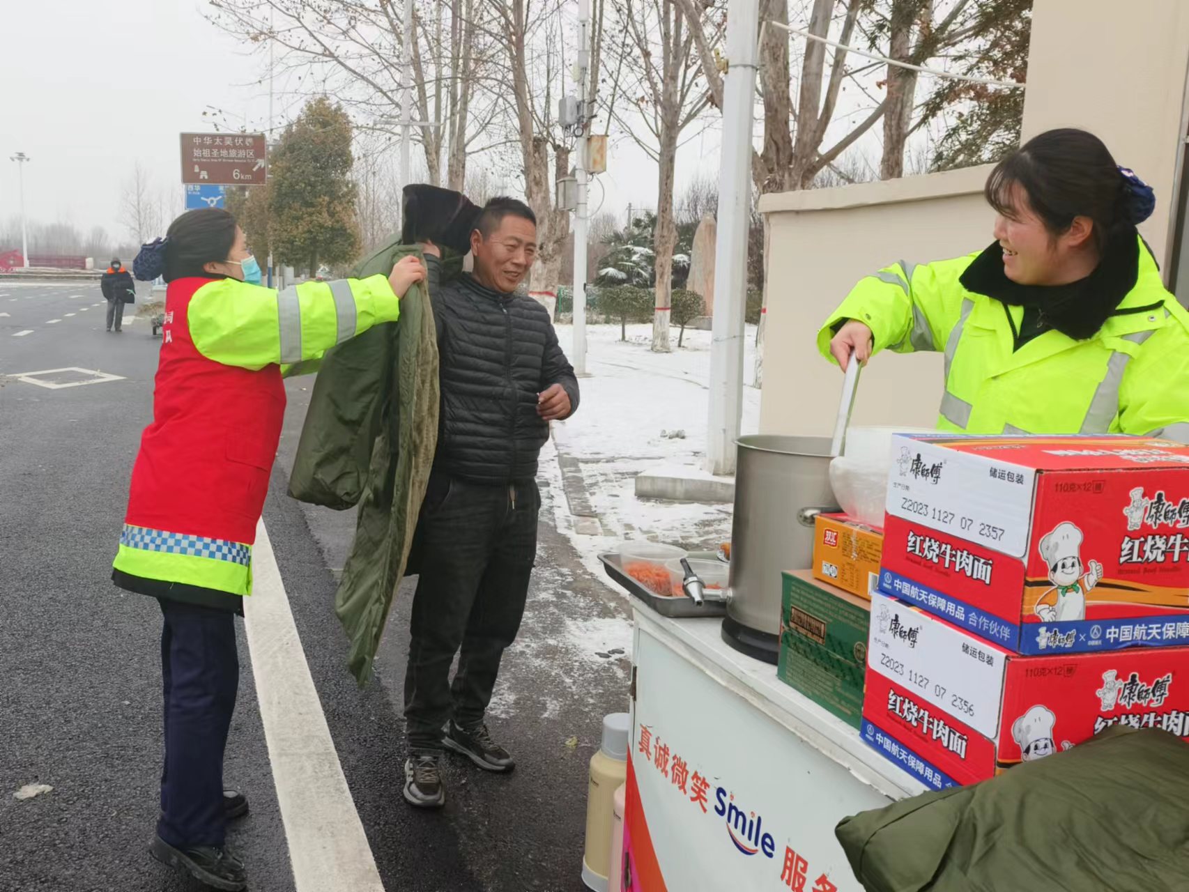開展“情滿旅途、暖心春運”活動,實行全員駐站,黨員干部下沉一線、靠前指揮;組建黨員突擊隊,設(shè)立黨員先鋒崗、志愿服務(wù)臺,開展志愿服務(wù),儲備棉大衣2000件、瓶裝水1000件、方便面1200箱、火腿腸500箱、熱水壺500個等應(yīng)急物資,為司乘提供熱水、維修工具、路況指引、充電器、救助司乘,開辟生命綠色通道,巡邏車開道與時間賽跑,緊急護送危重病人,打通生命救援通道,確保司乘人員“不凍著、不餓著、不滯留”。