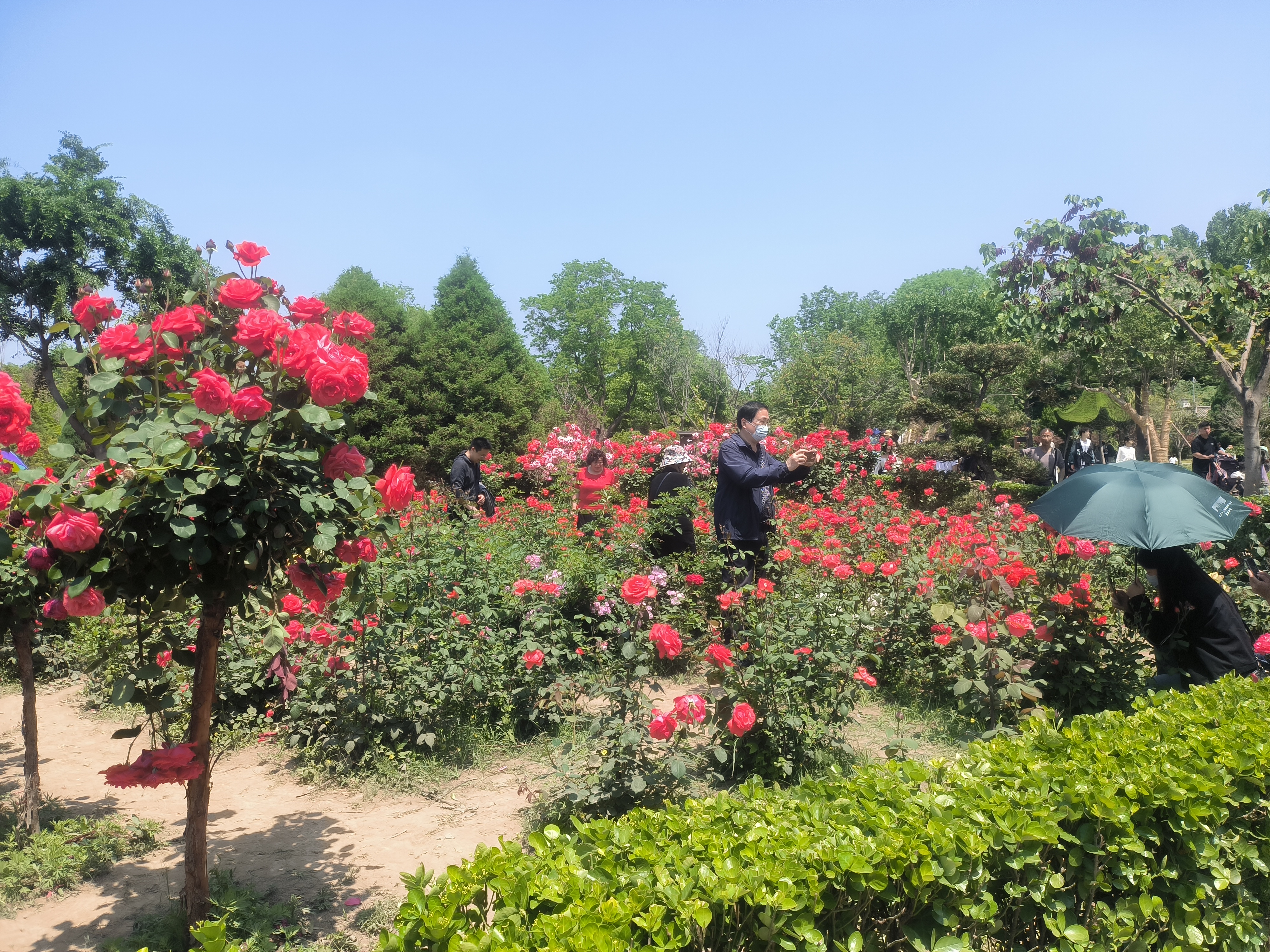 5月4日,淮陽區(qū)伏羲文化旅游區(qū)剪枝公園內(nèi),幾名游客跨過月季園圍欄強(qiáng)行與月季花“親密接觸”。一些市民對此頗有微詞,呼吁游客愛惜草木文明旅游。記者 沈湛 攝