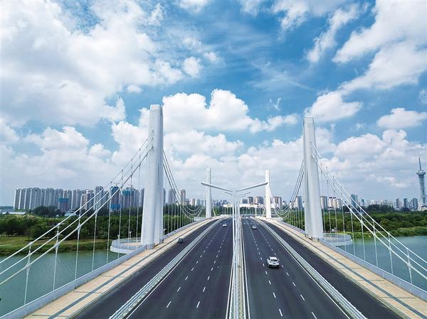7月25日,藍天白云映襯下,周口市七一路跨沙潁河大橋以“揚帆出海”的獨特造型,生動展現(xiàn)了這座中原港城的雄心。
