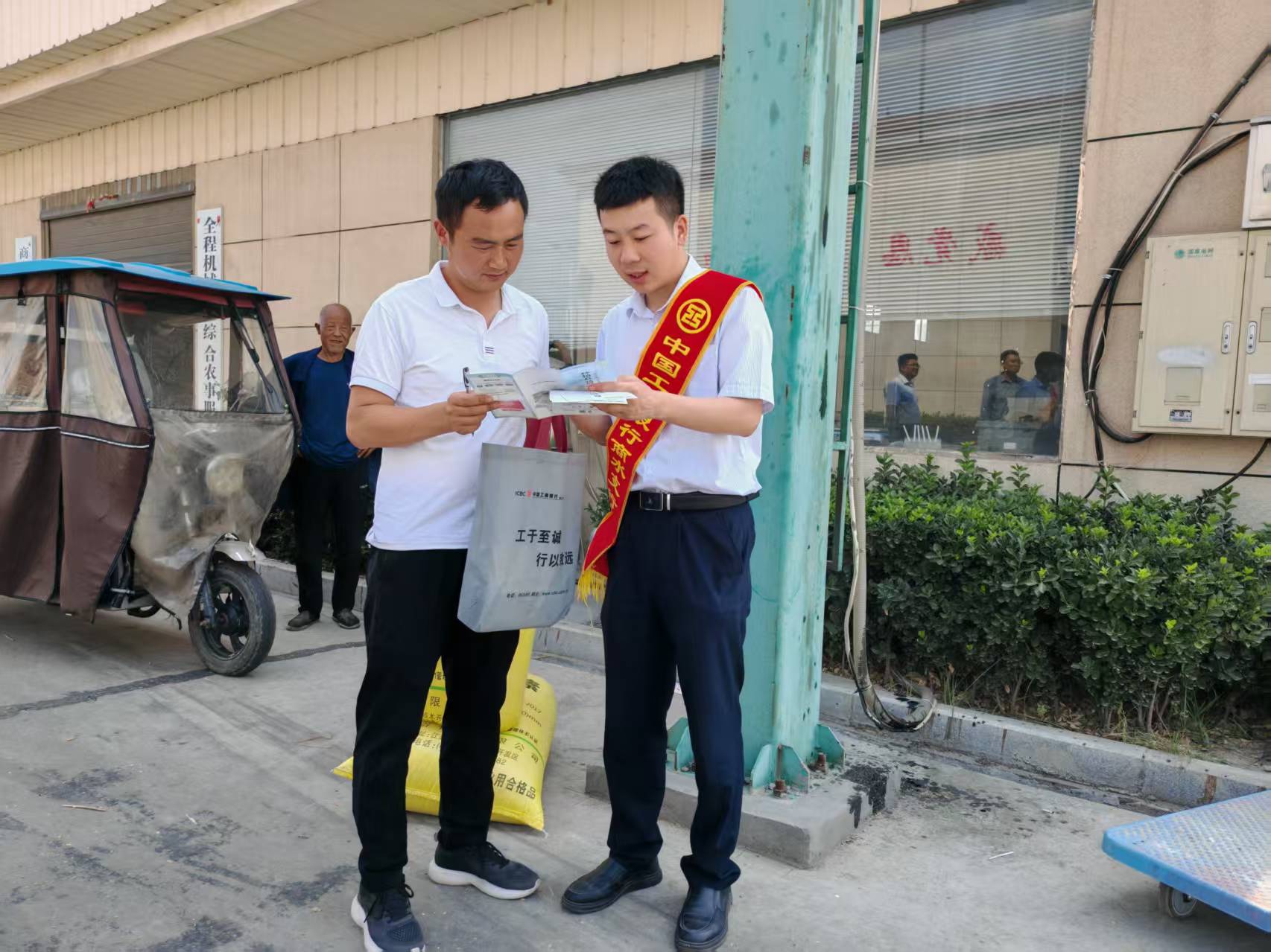 在此基礎(chǔ)上,該行組織志愿者到鄉(xiāng)村合作社和糧食收購(gòu)站開(kāi)展送清涼活動(dòng),為交糧農(nóng)戶和收購(gòu)人員送上飲用水,遞上宣傳折頁(yè),向他們講解工商銀行的普惠金融業(yè)務(wù),介紹為農(nóng)村合作社、種糧大戶、糧食收購(gòu)站量身定制的“種植e貸”“糧食收購(gòu)貸”等金融產(chǎn)品;為他們宣傳國(guó)家金融惠農(nóng)政策,普及反電信詐騙、反假幣知識(shí),切實(shí)守好自身“錢袋子”。