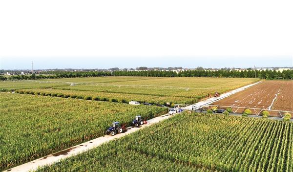 近日,鄲城縣積極組織機(jī)械入田搶收秋糧,確保秋糧顆粒歸倉(cāng)。記者 徐松 攝