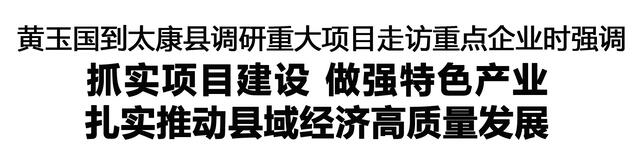 調研中,黃玉國聽取太康縣項目建設、招商引資等重點工作情況匯報,強調要堅持穩(wěn)中求進,進一步認清形勢,增強壓力感、緊迫感和責任感,全力扭轉經濟增長乏力局面。要抓緊抓實項目建設,真正把工作重心和精力放在抓項目上,堅持向政策要機遇、向市場要項目,保證數(shù)量、做實項目、提升效益,算好投入產出賬,以高質量項目支撐縣域經濟高質量發(fā)展。要努力提升城鄉(xiāng)面貌,用心用力加強城市建設管理,持續(xù)推進農村人居環(huán)境整治,做優(yōu)商貿服務業(yè),激活城鄉(xiāng)發(fā)展活力。要振奮精神、強力作為、狠抓落實,領導干部要帶頭樹立和踐行正確政績觀,敢擔當、作表率,堅定發(fā)展信心,勇于攻堅克難,健全工作機制,鼓勵擔當作為,以新氣象新作為推動各項工作取得新成效。