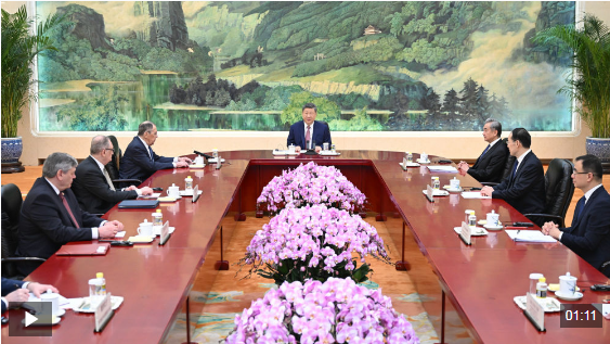 拉夫羅夫說:“尊敬的主席先生,此次會見體現(xiàn)了您對俄中新時代全面戰(zhàn)略協(xié)作伙伴關(guān)系的重視。俄中在貿(mào)易、經(jīng)濟、投資、人道主義、文化等領(lǐng)域的合作發(fā)展勢頭良好,您和普京總統(tǒng)給我們未來合作擘畫了藍圖。”