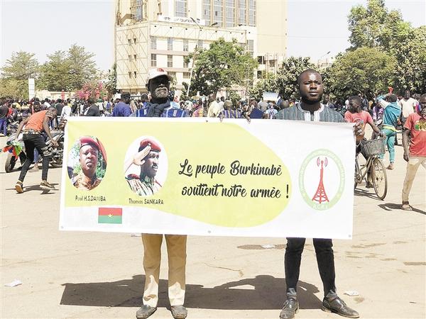 1月25日,示威者聚集在布基納法索首都瓦加杜古的民族廣場支持政變軍人(手機(jī)拍攝)。布基納法索政變軍人24日在國家電視臺發(fā)表講話說,軍方已奪取政權(quán),并解除總統(tǒng)卡博雷的職務(wù)?!?a href="http://m.4008770.com/szb/pc/col/202201/27/content_158702.html" target="_blank" >[詳細(xì)]