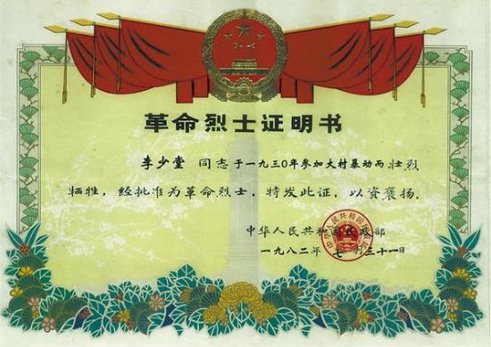 李少堂,河南鹿邑人,1925年背井離鄉(xiāng)流落到連云港,1928年加入中國共產(chǎn)黨,1930年任中共東海中心縣委軍事委員,參與領(lǐng)導(dǎo)大村暴動失敗后,被國民黨反動派殺害。