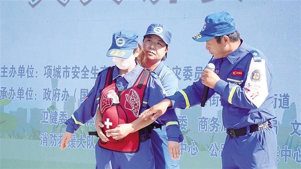 6月16日,項(xiàng)城市舉行“安全宣傳咨詢(xún)?nèi)铡被顒?dòng)?;顒?dòng)設(shè)置警示教育片展播、應(yīng)急技能演示、救援裝備展示、安全咨詢(xún)等環(huán)節(jié)。圖為項(xiàng)城應(yīng)急藍(lán)天救援隊(duì)3名隊(duì)員演示海姆立克急救法操作流程。
