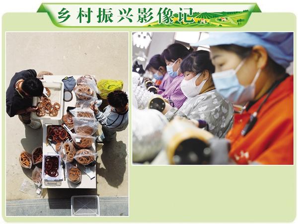 淮陽區(qū)葛店鄉(xiāng)回龍集村民依托傳統(tǒng)核桃雕刻技藝,創(chuàng)新打造“工廠+數(shù)字電商”融合發(fā)展模式,構(gòu)建起“原料加工—創(chuàng)意設(shè)計—雕刻生產(chǎn)—電商營銷”全鏈條文玩產(chǎn)業(yè)體系,成為鄉(xiāng)村振興背景下電商賦能的典型案例。圖為4月1日村民在車間加工文玩核桃(上)及通過直播平臺銷售產(chǎn)品(左)的場景。