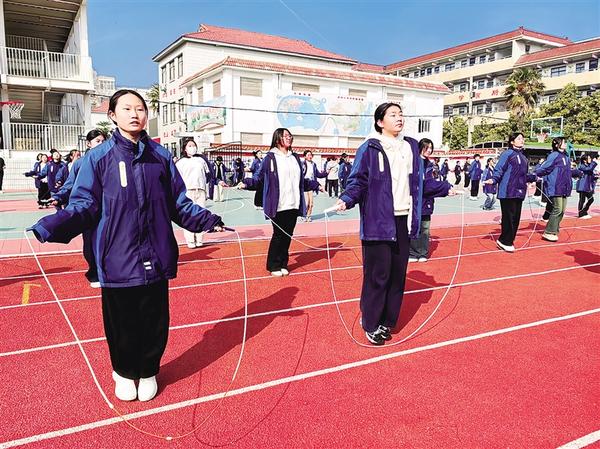 2月26日,周口市第十九初級中學(xué)九年級學(xué)生在大課間跳繩。從2025年春季學(xué)期起,我市全面推動義務(wù)教育階段學(xué)校每天開展兩小時綜合體育活動。