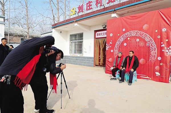 1月21日,攝影師為村民拍攝照片。當(dāng)天,周口日?qǐng)?bào)社攜手周口市攝影家協(xié)會(huì),到淮陽區(qū)馮塘鄉(xiāng)劉莊村開展慰問活動(dòng)。此次活動(dòng)不僅為村民免費(fèi)拍攝夫妻照與全家福照,還向村民贈(zèng)送了春聯(lián)和羊毛圍巾,為他們送上濃濃的祝福。