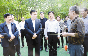 在沙潁河八一路橋,徐光被沙潁河兩岸正在開展的環(huán)境集中整治的火熱場景所吸引。近5000名機關(guān)干部職工頂著烈日,正在各自分包的路段緊張勞動。有的腰間系上繩子,來到陡峭的河堤下清理垃圾;有的在堤上清運垃圾;有的從河里提來水,認真地清洗線桿上的小廣告。徐光沿河而行,與正在參加義務(wù)勞動的機關(guān)干部親切交談?!澳銈兪悄膫€單位、負責(zé)的堤段有多少、清理的范圍是什么、大家對開展環(huán)境集中整治是否滿意?!毙旃鈫柕谜J真仔細。“滿意,而且要全力參與。今天我們都是主動報名參加,環(huán)境好了我們大家都是受益者?!甭牭酱蠹业幕卮穑旃馐指吲d。他說,沙潁河是周口的母親河,一河穿城的美景是周口的獨特優(yōu)勢和城市名片。開展環(huán)境衛(wèi)生集中整治,是市委、市政府為民辦好事、辦實事的具體體現(xiàn),是展示周口良好形象的迫切需求。各相關(guān)單位要切實提高思想認識,迅速行動,按照整治要求,細化工作任務(wù)、落實工作責(zé)任、明確工作目標(biāo),做到有序推進,使之成為展示城市魅力的景觀帶、市民休閑健身的綠色長廊。要統(tǒng)一規(guī)劃、注重開發(fā)、加快建設(shè)、強化管理,進一步加大沙潁河城區(qū)段綜合整治力度,使之能夠更好地服務(wù)市民生活。