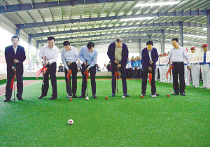 本報訊 (記者 李鳳霞 宋馨 沈湛 文/圖) 5月5日上午,“中國體育彩票杯”河南省第十二屆老年人體育健身大會門球交流活動在周口體育中心門球館舉行。省老年體協(xié)主席馬憲章,省體育局局長張文深,市委書記、市人大常委會主任徐光,市長劉繼標(biāo),正市長級干部李紹彬,市人大常委會副主任、市老年體協(xié)主席游保峰,省老年體協(xié)副主席王瑋等領(lǐng)導(dǎo)共同為活動開球(如圖)。