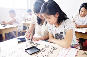書畫相輔相成 為弘揚(yáng)“書畫同源”的中國(guó)傳統(tǒng)藝術(shù),本中心常年班采取書畫相輔相成的教學(xué)方法,毛筆與硬筆相結(jié)合、書法與繪畫教學(xué)交替進(jìn)行,以求事半功倍的教學(xué)效果。